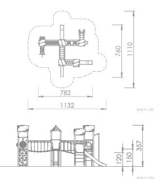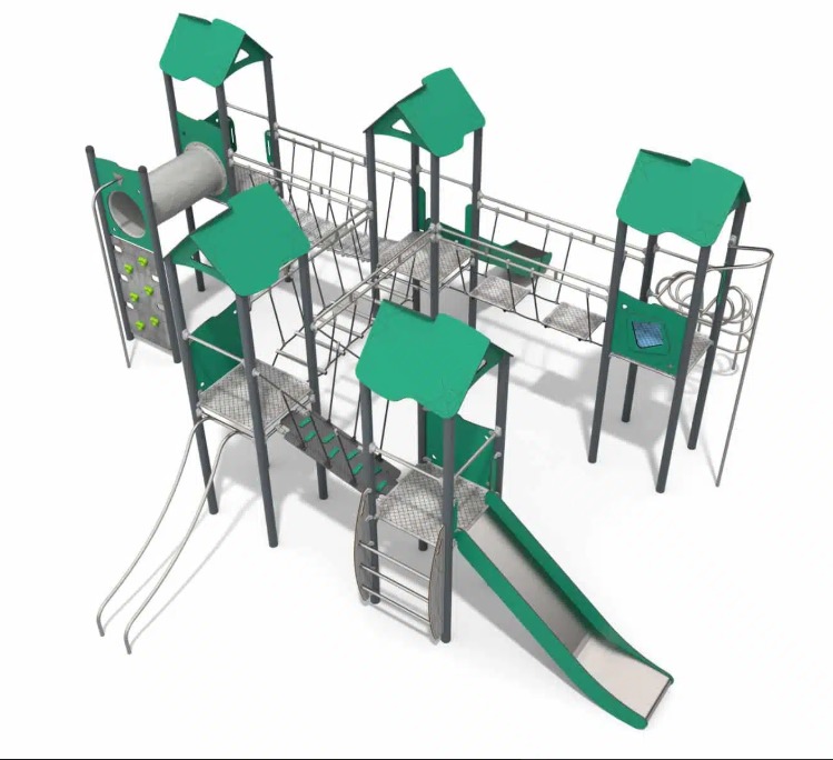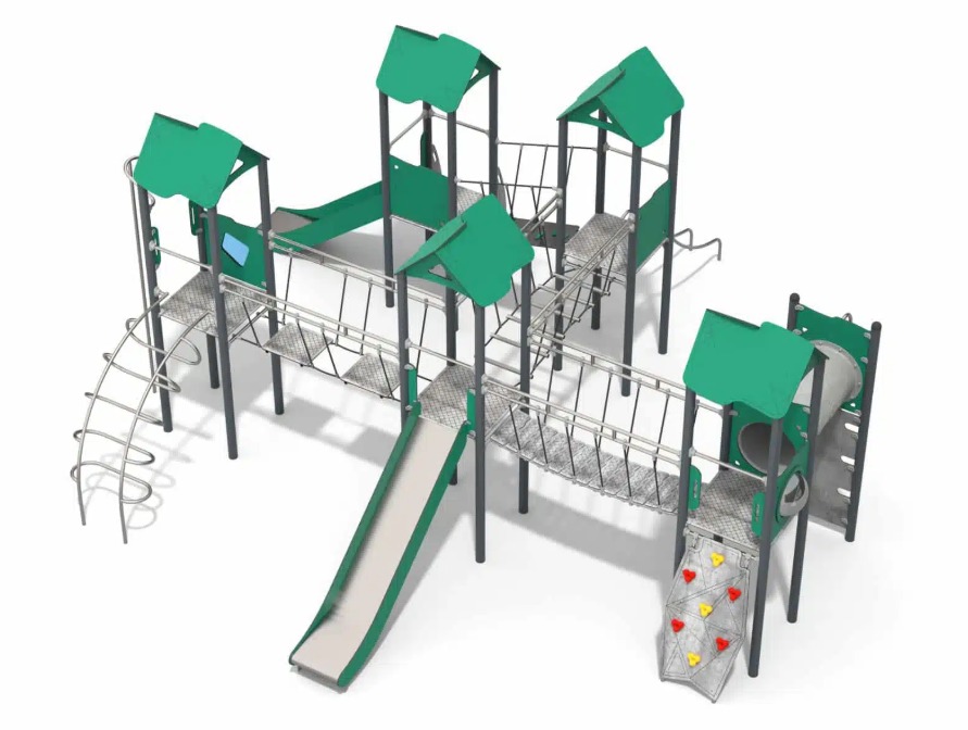 Taubroer med ulike nivåer av balanse- og koordinasjonstrening, rørstige, sklier, rørsklie, brannmannstang, tunnel, stige og aktivitetspaneler.