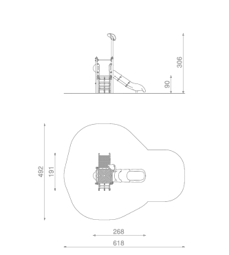 Kombinasjonsapparat med plattform, rutsjebane, trapp og klatrenett.
