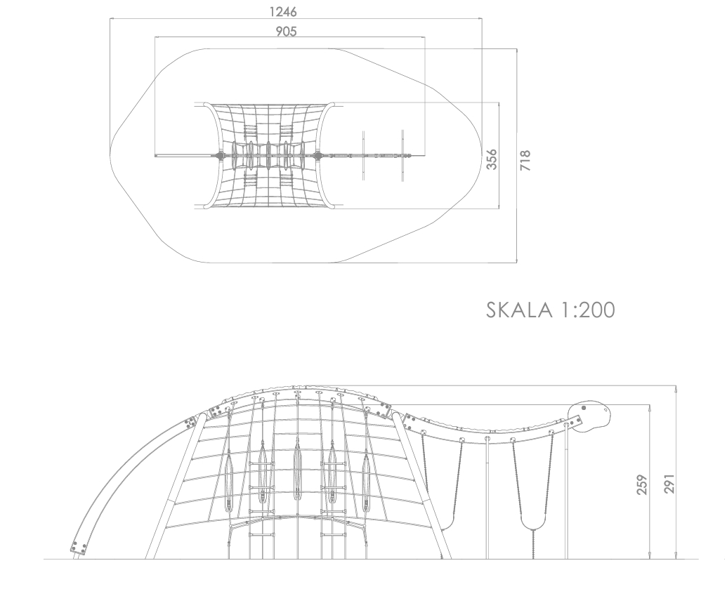 Fantasirike lekeapparater utformet som dinosaurer i rustfritt stål, HDPE og HPL-plater og med en solid buet stokk av dobbelt-impregnert treverk. Fantastisk design og massiv lekeverdi!