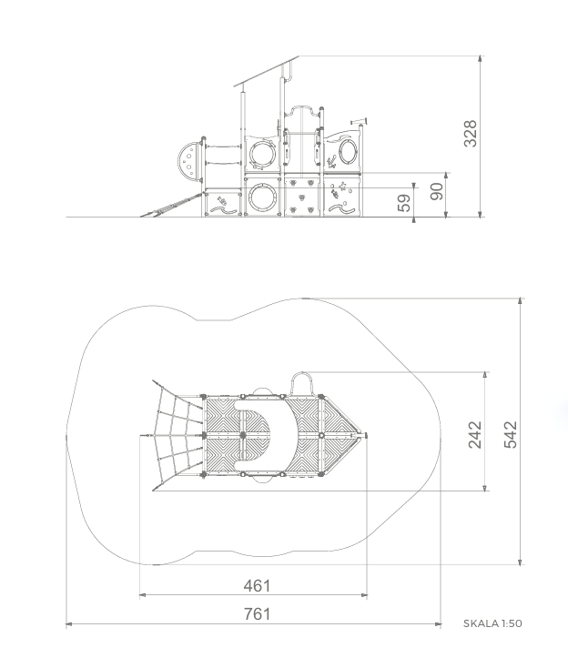 Fiskebåt med klatregarn, brannmannstang, klatrevegg, kahytt med ror, kikkert og mange flere detaljer!