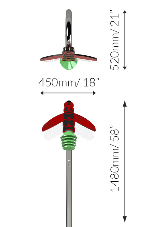 Ildflue er et stemningsfullt utendørsinstrument som kombinerer lysende farger, myke former og harmoniske toner til en unik sanseopplevelse. Det karakteristiske designet i rødt, svart og grønt vekker nysgjerrighet og inviterer barn til rolig utforskning og kreativ lek.