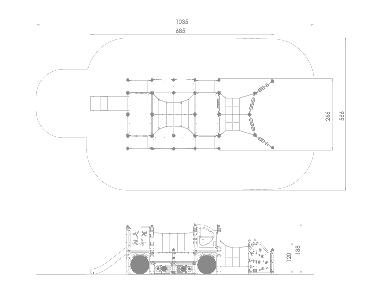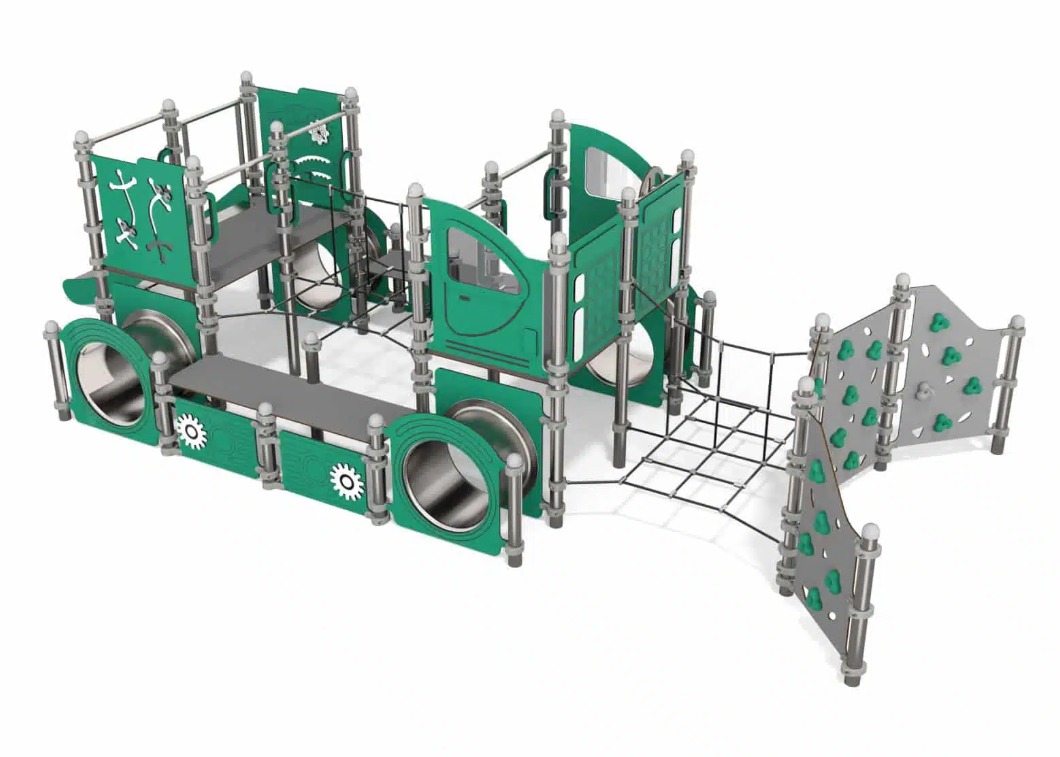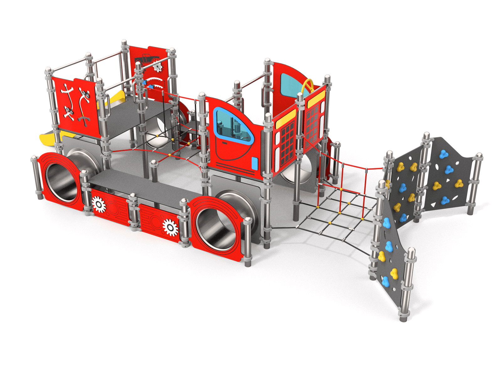 Stor «snowcat» beltevogn med mange detaljer som klatrevegger, klatrenett, kryptunneler, rutsjebane og mye mer!