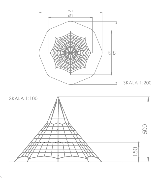 Stor klatrepyramide med høyde på 5 meter.