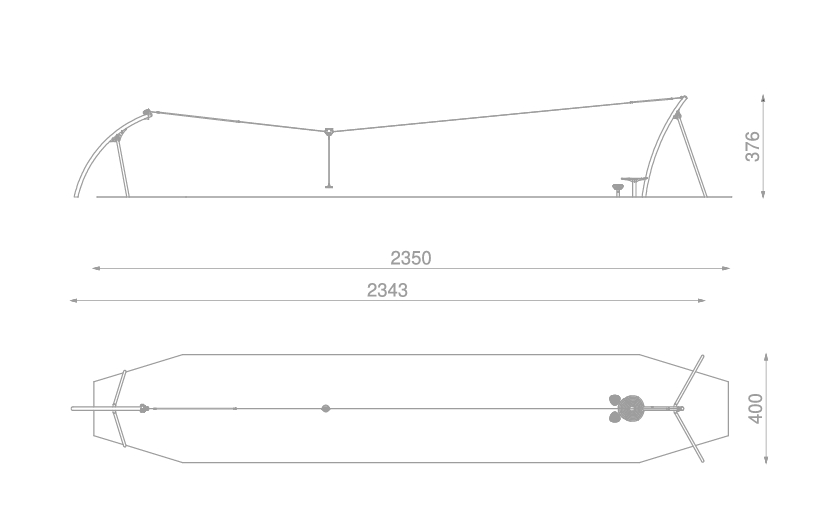 Taubane med startplattform. produsert i pulverlakkert stål.