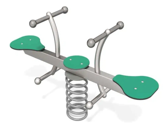 Dobbelvippe på fjær med 2 seter, fotstøtte og håndtak for bedre grep.