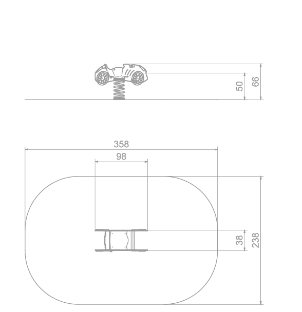 Vippebil i HDPE med stålfjær. Leveres ferdig sammenskrudd.