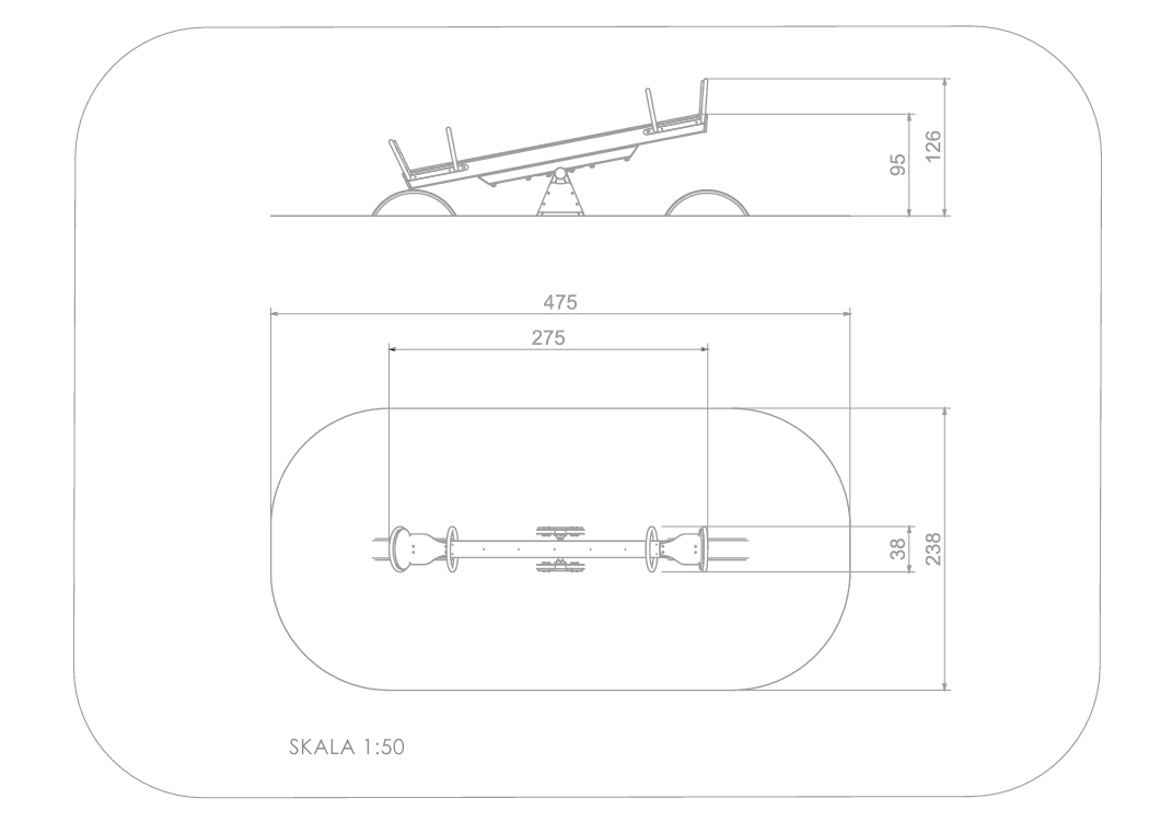 Vippehuske for 2. Inneheld håndtak og dekk for demping.