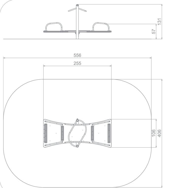 Vippehuske i pulverlakkert stål, laget for 2 rullestoler.