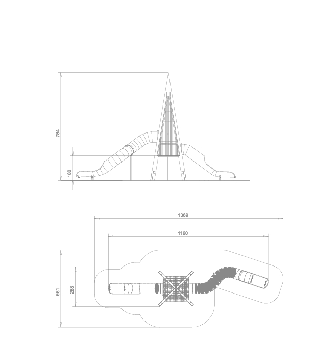 Flott lekepyramide i flere nivåer med 2 rørsklier og stige, flott å ha på lekeplass.