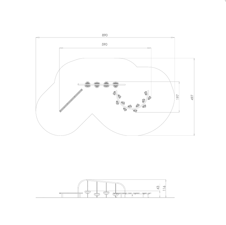 Balanseløype med balanselek, balansestokk og lianegang. Hver enkelt komponent leveres ferdig sammenskrudd, klar for nedstøp.
