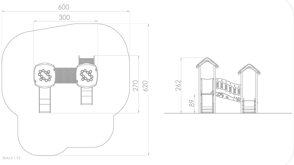 En serie med kombinasjonsapparater, lekehus og aktivitetsapparater for de minste. Hele serien har en fallhøyde på 90 cm eller lavere. Da er kravene på fallunderlag lit mindre krevende.