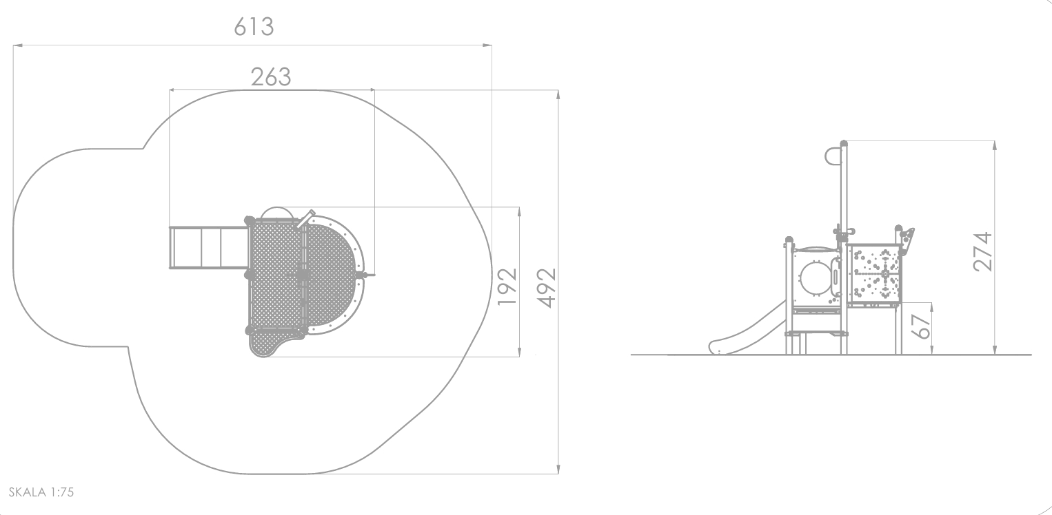 En serie med kombinasjonsapparater, lekehus og aktivitetsapparater for de minste. Hele serien har en fallhøyde på 90 cm eller lavere. Da er kravene på fallunderlag lit mindre krevende.