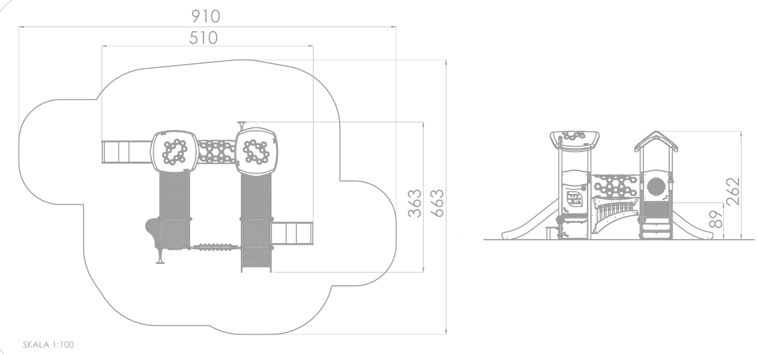 En serie med kombinasjonsapparater, lekehus og aktivitetsapparater for de minste. Hele serien har en fallhøyde på 90 cm eller lavere. Da er kravene på fallunderlag lit mindre krevende.
