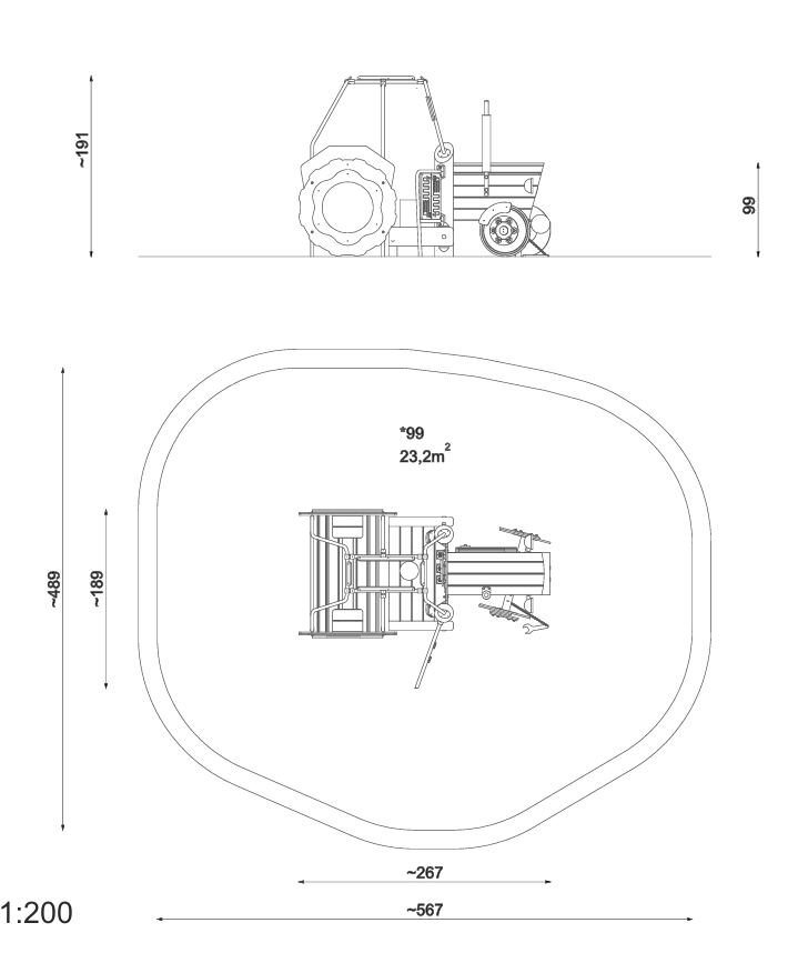 Traktor med plass til mange. Paneler, ratt og krabbetunnell er bare noe av hva denne morsomme traktor byr på.