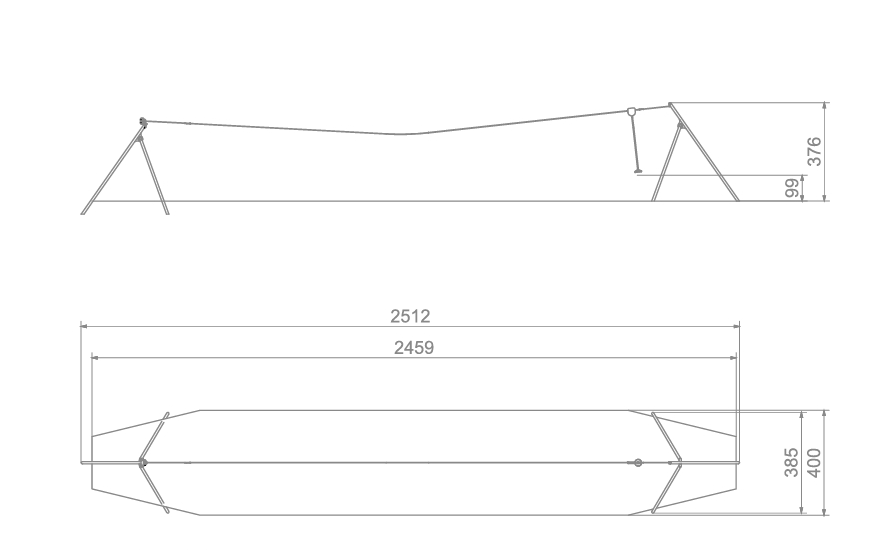 Taubane uten startplattform. Monteres med minimum 50 cm. helning, 16 meter bane.